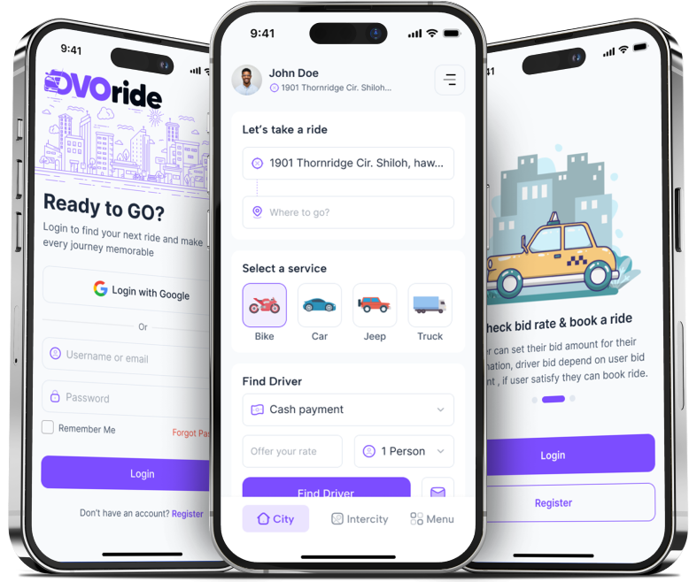 Os passageiros inserem os detalhes da viagem e os motoristas enviam propostas competitivas. Os passageiros podem comparar ofertas com base em preços e classificações.